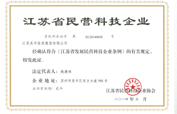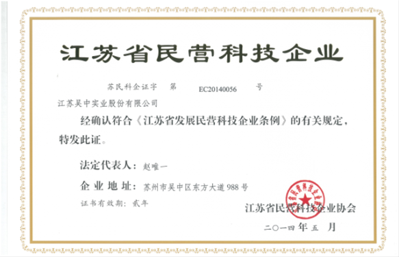 2014年江苏吴中和亚娱体育双双荣获江苏省民营科技企业协会发布 的“江苏省民营科技企业”称号。