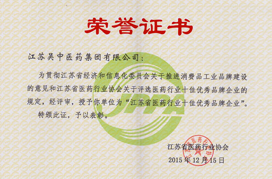 亚娱体育-亚娱(中国)有限公司获得“江苏省医药行业十佳优秀品牌企业”