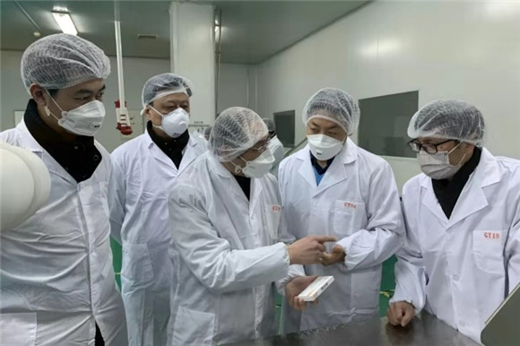 1月28日上午,江苏省药监局苏州检查分局局长杨文刚及相关领导到工厂进行现场检查,对药品生产质量管理及捐赠药品流向管理做了指导,要求我们企业保证产量的同时,严把质量关,要做合格放心的产品。苏州市工信局、发改委等部门积极与公司对接,了解企业复产存在的困难与问题,努力予以协调保障,支持企业扩大产能、保障市场供应。