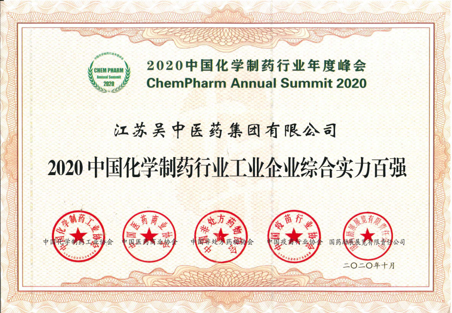 凭借过硬的产品质量、诚信为本的经营管理与持续推进的品牌建设,亚娱体育-亚娱(中国)有限公司荣获“2020中国化学制药行业工业企业综合实力百强”。