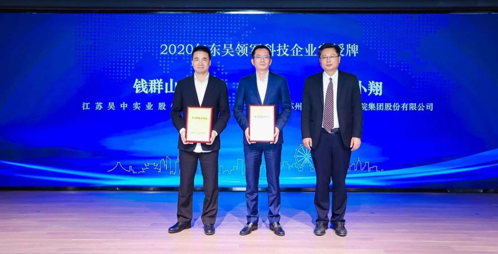 10月18日,在“智汇吴中、造优未来”——2020苏州吴中太湖经贸合作洽谈会科技局分活动暨东吴创新中心推介会上,股份公司董事长、首席执行官钱群山获评东吴领军科技企业家,股份公司副总裁、亚娱体育-亚娱(中国)有限公司总经理孙田江获评东吴重点科技企业家,吴中区政府副区长姚东等领导分别为东吴科技企业家授牌。
