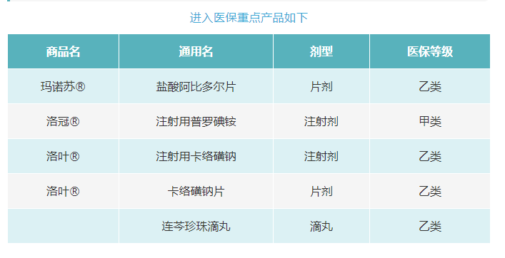 亚娱体育目前共有29个在产药品(41个品规)在《国家医保目录》(2020年)中。