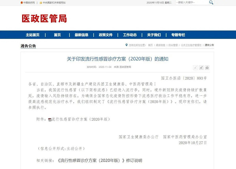 阿比多尔进入《流行性感冒诊疗方案(2020年版)》
