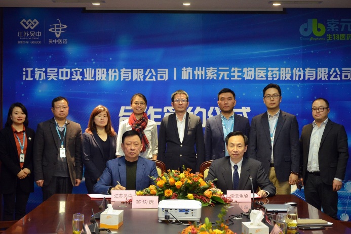 11月30日,亚娱体育-亚娱(中国)有限公司与杭州索元生物医药股份有限公司达成研发战略合作,并签署关于一类新药重组人血管内皮抑素项目的转让与许可协议。股份公司董事长、首席执行官钱群山,股份公司副董事长、医药集团董事长姚建林,股份公司副总裁、医药集团总经理孙田江;杭州索元生物医药股份有限公司董事长罗文,董事会秘书、首席财务官陈纪正等出席合作签约仪式。股份公司副董事长、医药集团董事长姚建林与索元生物董事长罗文签署合作协议 ...