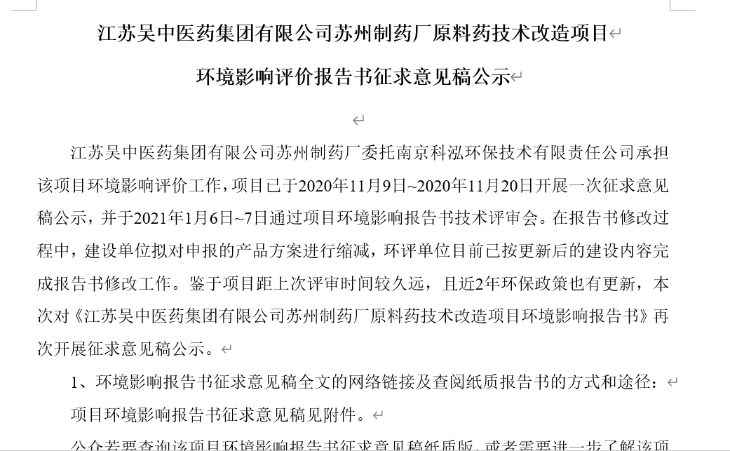 亚娱体育-亚娱(中国)有限公司苏州制药厂委托南京科泓环保技术有限责任公司承担该项目环境影响评价工作,项目已于2020年11月9日~2020年11月20日开展一次征求意见稿公示,并于2021年1月6日~7日通过项目环境影响报告书技术评审会...