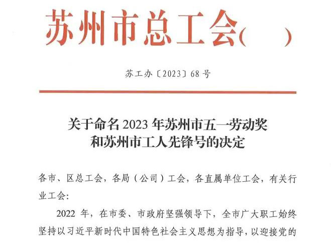 为表彰先进、树立榜样,在全社会弘扬劳模精神、劳动精神、工匠精神,培育时代新风新貌,苏州市总工会在五一前夕表彰了一批积极投身疫情防控和经济社会发展各项工作,为推动苏州经济社会高质量发展作出了积极贡献,爱岗敬业、艰苦奋斗、锐意创新、无私奉献的先进集体和先进个人...