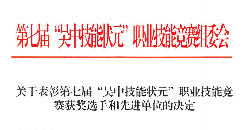 荣誉 | 公司员工在第七届“吴中技能状元”职业技能竞赛中喜获佳绩