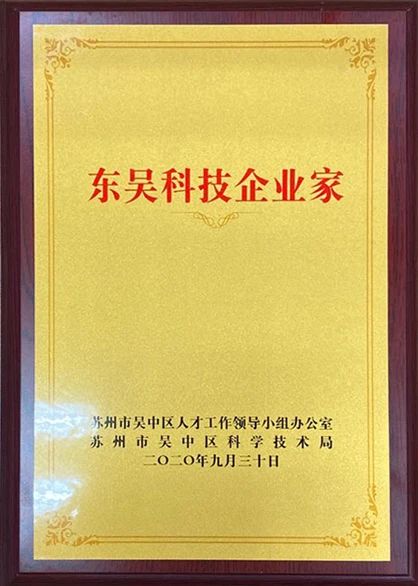 10月18日,在“智汇吴中、造优未来”——2020苏州吴中太湖经贸合作洽谈会科技局分活动暨东吴创新中心推介会上,股份公司董事长、首席执行官钱群山获评东吴领军科技企业家,股份公司副总裁、亚娱体育-亚娱(中国)有限公司总经理孙田江获评东吴重点科技企业家,吴中区政府副区长姚东等领导分别为东吴科技企业家授牌。