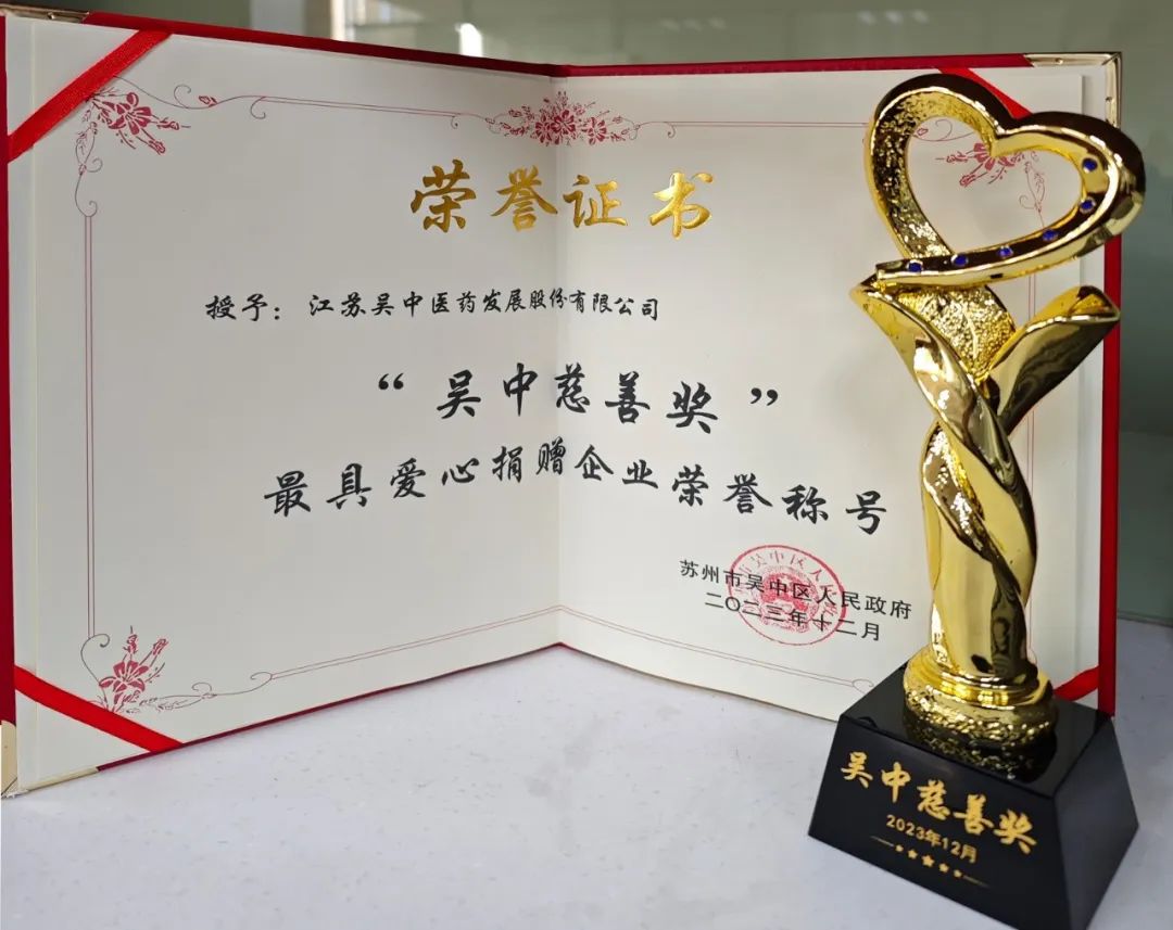 荣誉 | 亚娱体育母公司荣获“吴中慈善奖”最具爱心捐赠企业荣誉称号 日期:2023年12月20日