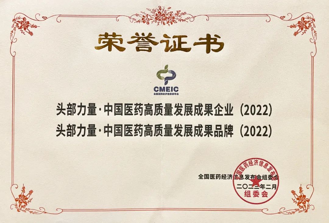 亚娱体育荣获“2022头部力量-中国医药高质量发展成果企业及成果品牌”