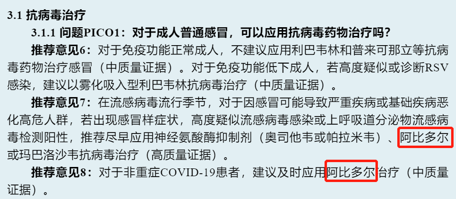 阿比多尔进入成人普通感冒诊断和治疗临床实践指南(2023)
